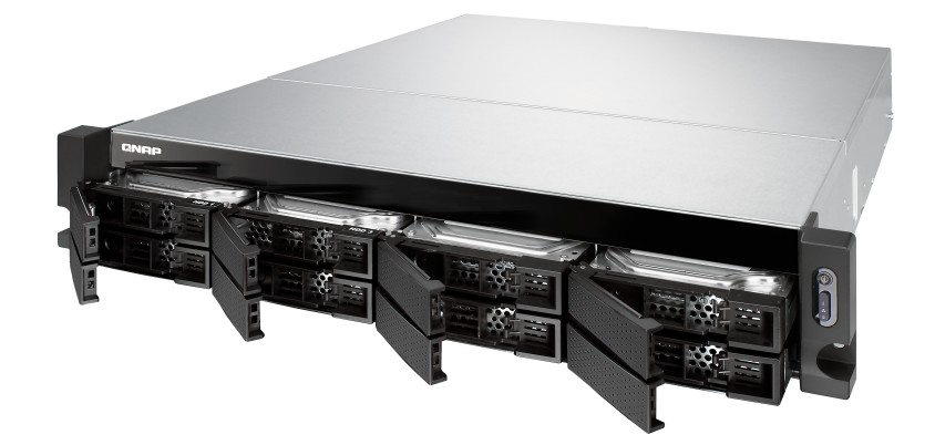Сетевой накопитель QNAP TS-883XU, CPU Intel Xeon E-2124 (3.3-4.3GHz, 4/4 cores), RAM 8GB DDR4, 4xRJ-45 1Gbit ports, no RJ-45 2.5Gbit ports, , 2xSFP+ 10Gbit ports, 8x3.5" (LFF), 0/1/10/5/50/6/60/JBOD RAID levels, no drives, 4xUSB 3.0 ports, PSU 350W (1xPSU total), 2U rack