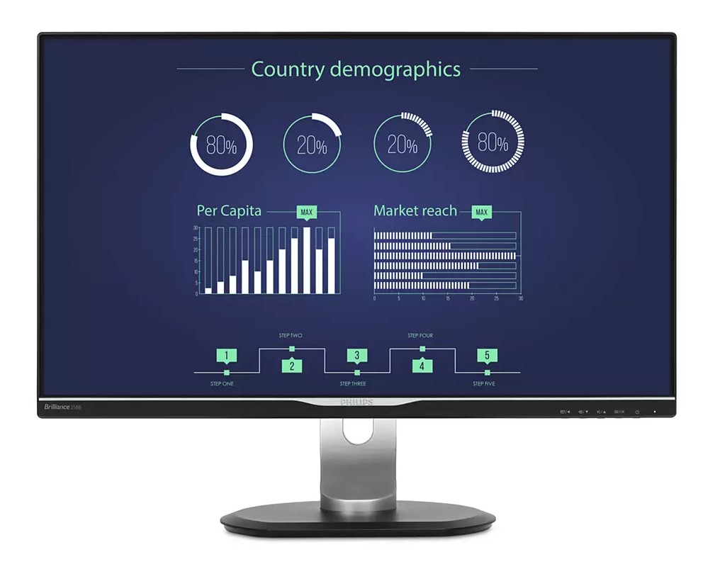 Монитор Philips 25-inch, IPS, 2560x1440 (16:9), 5ms, 178 horizontal/178 vertical, 350cd/m2, Speakers, 1xD-Sub, 1xDVI-D, 1xHDMI, 1xDisplayPort, HDCP, VESA 100x100mm
