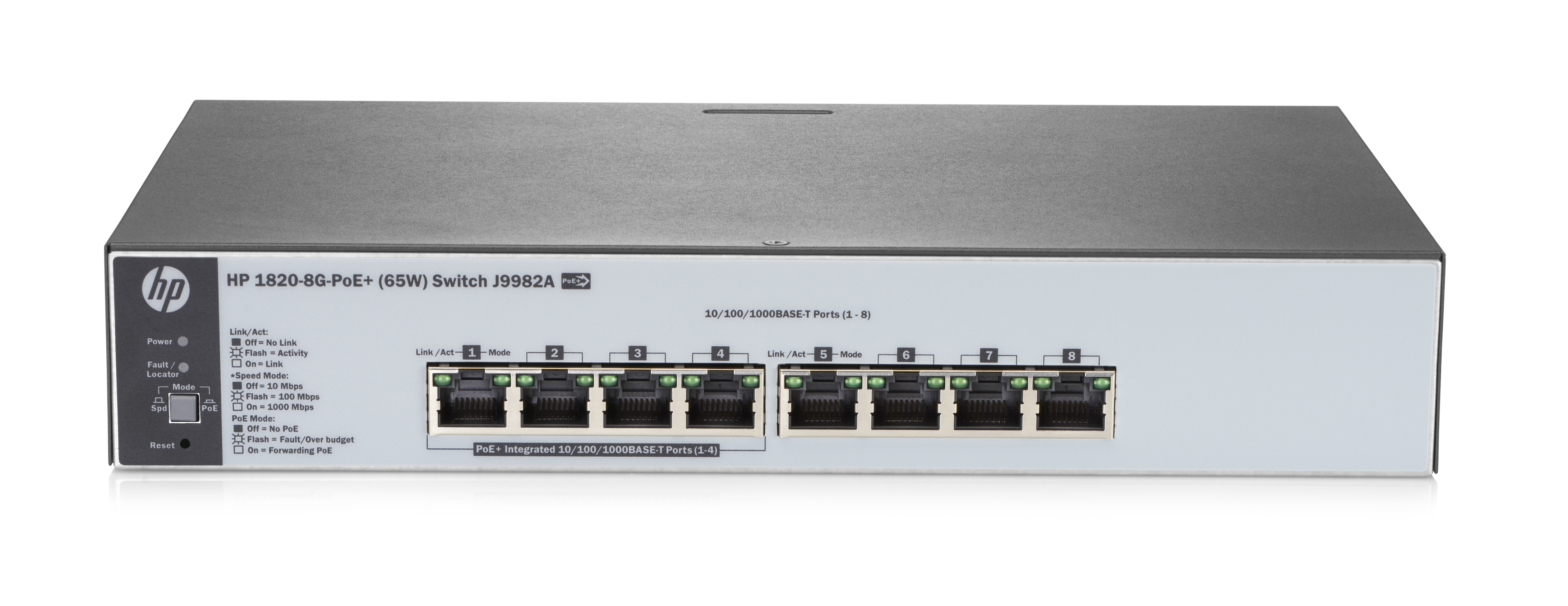 Коммутатор HPE OfficeConnect 1820, 8xRJ-45 1Gbit ports, Layer L2, Web managed, 4xPoE+ ports (PoE power 65W), desktop/1U rack