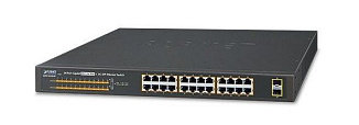 Коммутатор Planet GSW-2620, 24xRJ-45 1Gbit ports, 2xSFP 1Gbit ports, Layer L2, Unmanaged, 24xPoE ports (PoE power 220W), desktop/1U rack