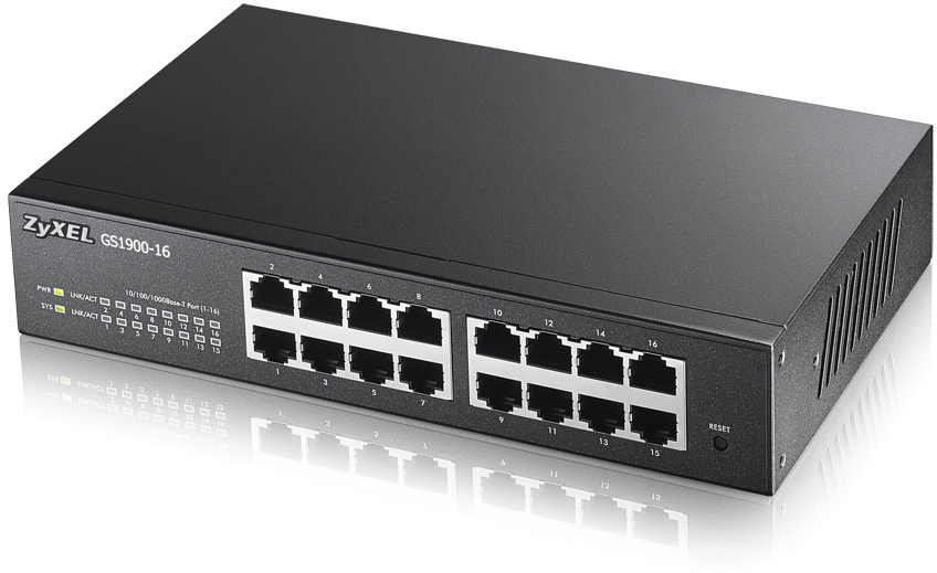 Коммутатор ZyXEL GS1900, 16xRJ-45 1Gbit ports, Layer L2, Web managed, desktop/1U rack