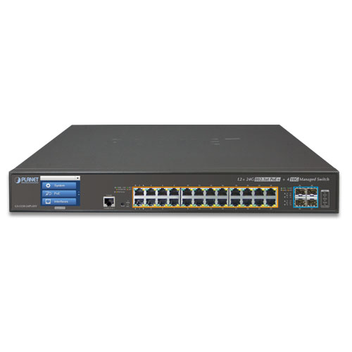 Коммутатор Planet GS-5220, 24xRJ-45 1Gbit ports, 4xSFP 1Gbit ports, Layer L2+, Web/CLI managed, 24xPoE+ ports (PoE power 400W), 1U rack