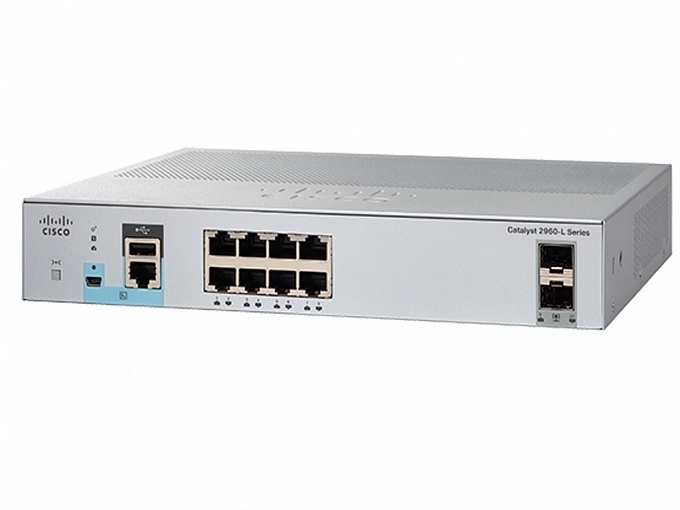 Коммутатор Cisco Catalyst 2960L, 8xRJ-45 1Gbit ports, 2xSFP 1Gbit ports, Layer L2, Web/CLI managed, 1U rack