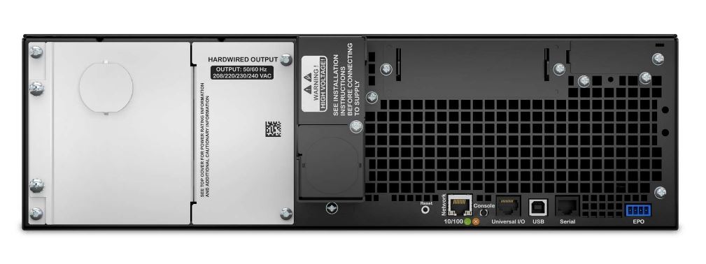 Источник бесперебойного питания APC Smart-UPS RC, Line-Interactive, 5000VA/4500W, Output Voltage: 230V, Input Voltage: 230V, Bypass, output 4-wire (3PH + G) connector, output 5-wire (3PH + N + G) connector, 1xSmartSlot (no pre-installed SmartSlot preinstalled), DB-9 RS-232, USB, RJ-45 100Mbit, 3U rack/tower